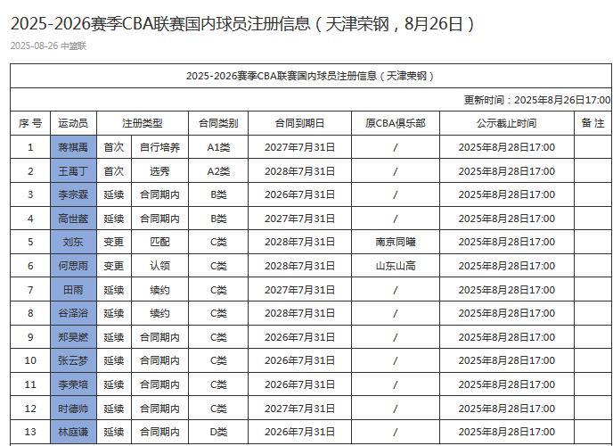 天津上报13人注册名单:林庭谦顶薪延续,刘东、何思雨在列